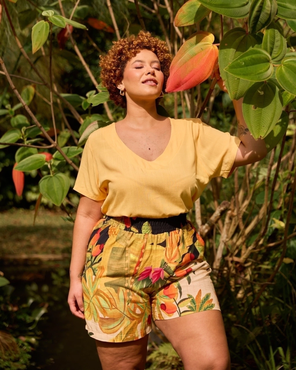 Confeccionado em viscose estampada digital com desenho exclusivo, o short ganha destaque pelo mix de cores vivas e detalhes únicos, que transformam a peça em um verdadeiro ponto de estilo no look. Uma escolha autêntica para compor produções cheias de personalidade.