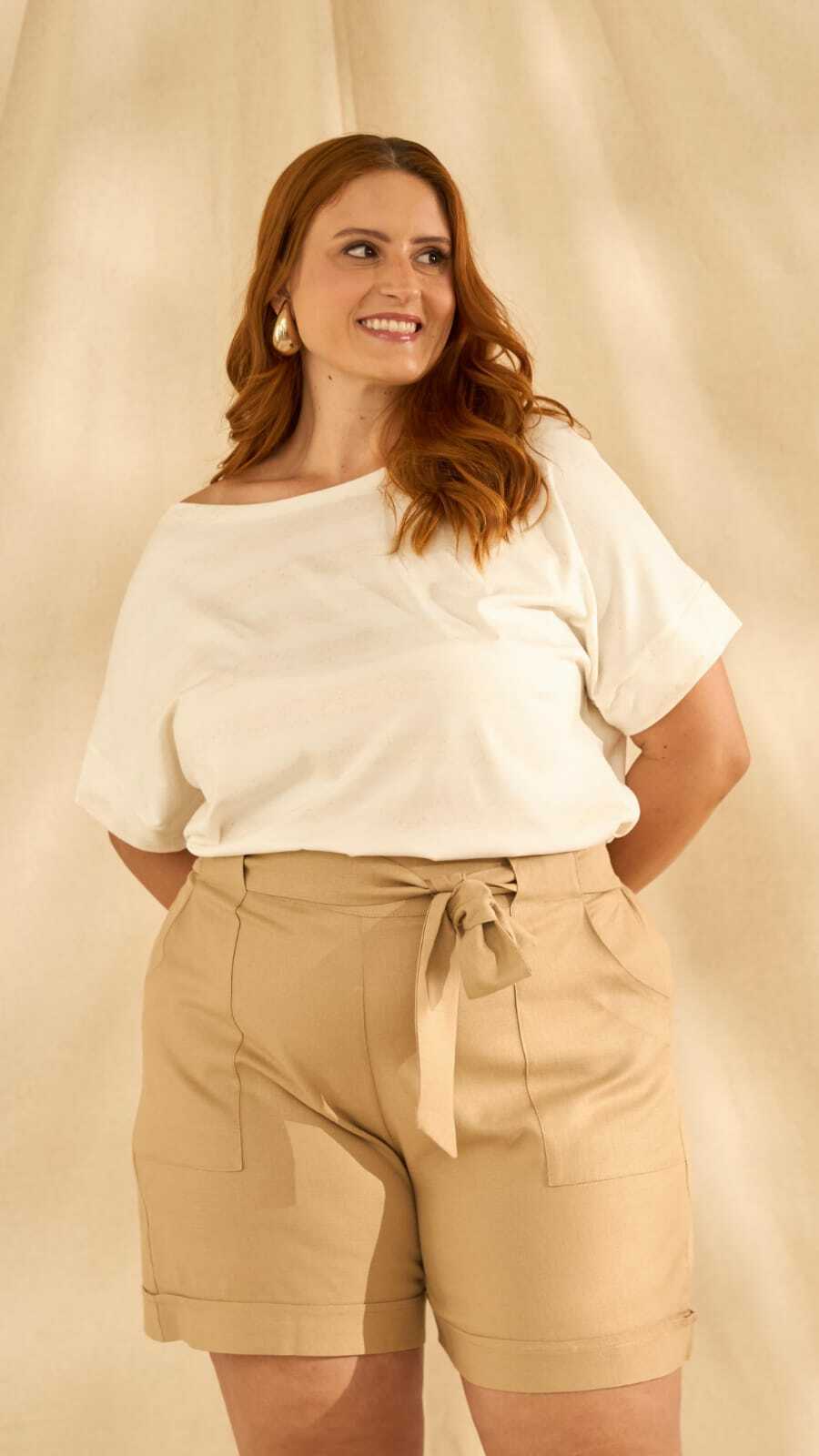 Nosso short de linho é a escolha ideal para dias quentes com estilo. Com cintura alta e faixa para amarração, ele valoriza a silhueta e garante um toque sofisticado mesmo nas produções mais casuais.