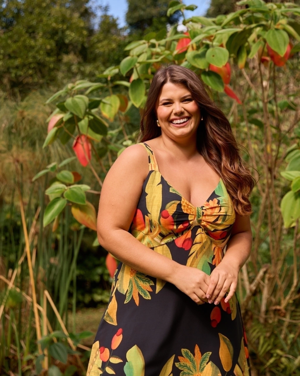 Com uma silhueta fluida que valoriza diferentes tipos de corpo, o vestido se destaca pelo caimento impecável e pelo movimento delicado do tecido, criando um visual naturalmente sofisticado. Confeccionado em viscose estampada digital com desenho exclusivo, ele ganha ainda mais personalidade, trazendo cores vivas e detalhes únicos. Além disso, o toque suave do tecido garante conforto, acompanhando a rotina com charme e praticidade.